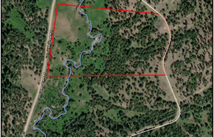 The lush green canopy of trees stretches as far as the eye can see, with a well-maintained dirt road winding through the landscape, providing easy access to various parts of the property. The forested area is ideal for hiking, wildlife observation, and enjoying the tranquility of the great outdoors. Additionally, the property offers easy access to Forest Service Land, expanding your exploration and recreational opportunities.