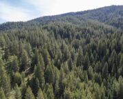 The lush green canopy of trees stretches as far as the eye can see, with a well-maintained dirt road winding through the landscape, providing easy access to various parts of the property. The forested area is ideal for hiking, wildlife observation, and enjoying the tranquility of the great outdoors. Additionally, the property borders Forest Service Land, giving this property a much larger feel and expanding your exploration and recreational opportunities.